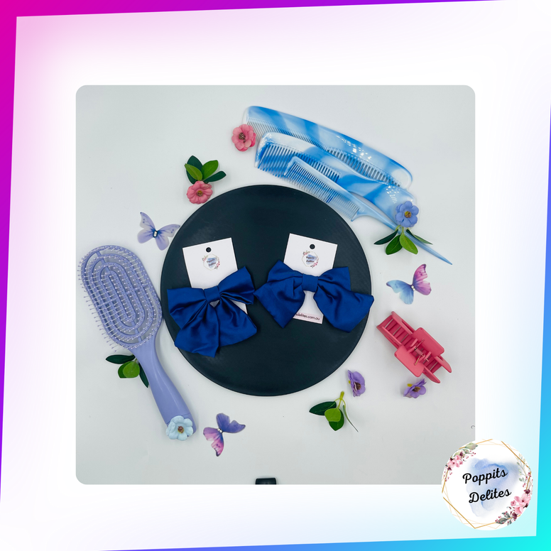 Indulge in luxury with our satin hair Bow. Hand-crafted in house with high quality satin fabric, this satin hair bow is perfect for adding elegance to any hairstyle. Securely held in place with an alligator clip, it's the perfect accessory for school or any occasion.