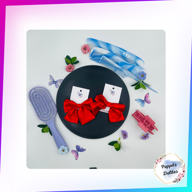 Indulge in luxury with our satin hair Bow. Hand-crafted in house with high quality satin fabric, this satin hair bow is perfect for adding elegance to any hairstyle. Securely held in place with an alligator clip, it's the perfect accessory for school or any occasion.